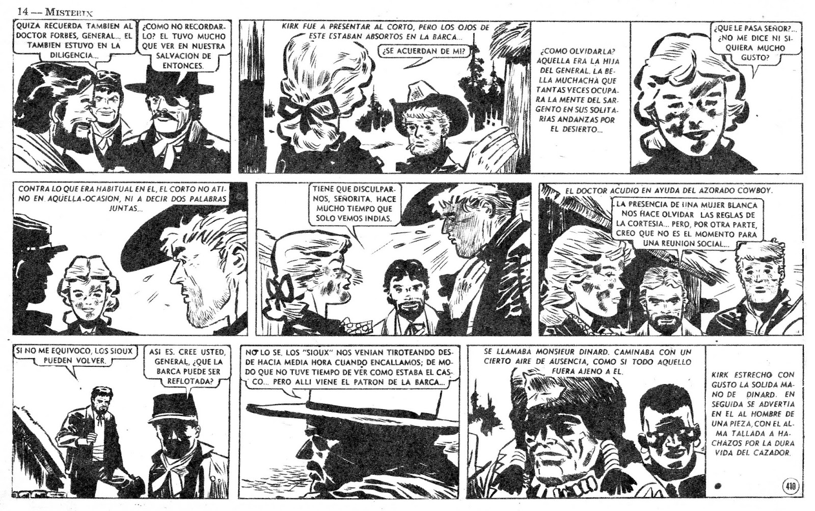Héctor Germán Oesterheld (w), Hugo Pratt (a), "Cerco de muerte" [deathly siege], Misterix # 300, June 18, 1954 (page 410 of the "Sgt. Kirk" series)..