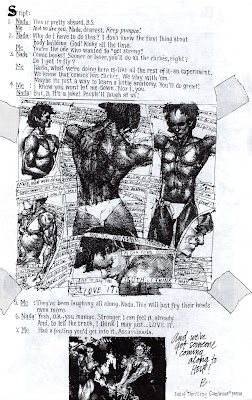 In "The Adjustment of Sydney Deepscorn," the fantasy genre element is equally present. But the autobio parts are less hidden. If the drawings tell the story of a final judgment, more than adjustment, the words tell it like it is. And that's exactly where the blow up part enters this post.