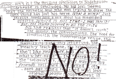 "Slidehouse," on the other hand, is a glorious failure of gargantuan proportions (something like Héctor Germán Oesterheld's and Alberto Breccia's version of "El Eternauta" in Gente magazine). "Slidehouse" failed because Barron Storey was extremely disappointed when it didn't produce the stir he hoped for in the comics milieu.