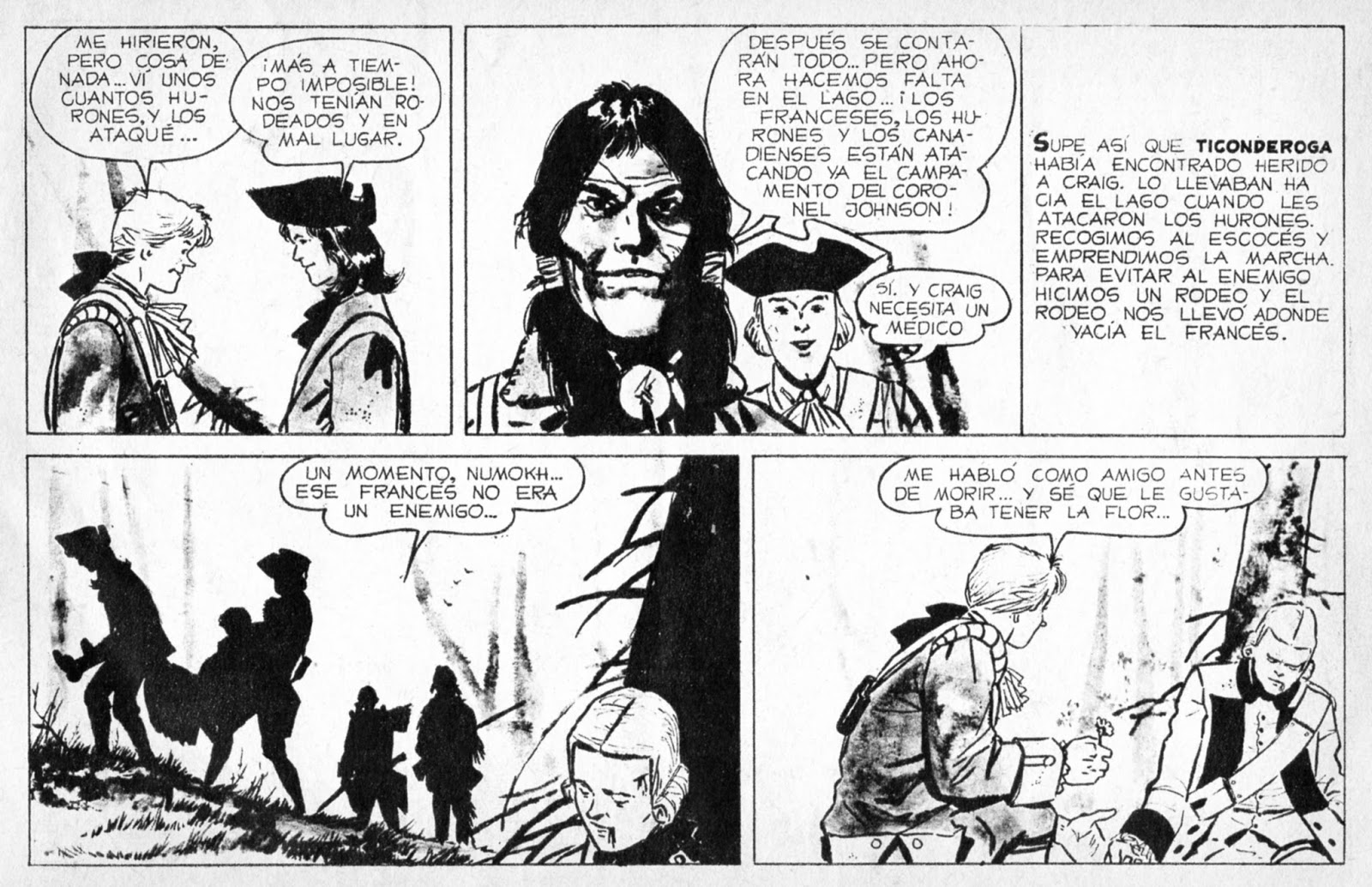 Héctor Germán Oesterheld (w), Hugo Pratt (a), "Cerco de muerte" [deathly siege], Misterix # 300, June 18, 1954 (page 410 of the "Sgt. Kirk" series)..