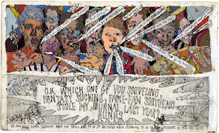 Barron Storey's magnum opus are his journals. He sees them as a way to illustrate his life, as he puts it. I think that he's such a great writer mainly because he's brutally honest. Robert Wilonsky (in the link above) summarizes Storey's work beautifully: "Sidney Deepscorn is a poor disguise, hiding nothing - his anger with a comic book industry interested only in two-dimensional superheroes; repressed memories of a childhood spent running with "gun-toting idiots" who liked to shoot at the "niggers" in South Dallas; his conflicting feelings about his mother. Reading "Sidney Deepscorn," or most any of Storey's works, is voyeurism.