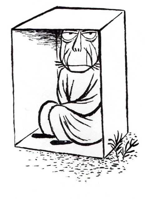 De Salomón a Sa-lo-món: o percurso de um anti-herói (Signos #21, 1978). Sa-lo-món dentro da caixa, para além de ser uma metáfora da vinheta de banda desenhada, como disse o póprio Chago, faz lembrar o desenho de William Steig que se pode ver em baixo: