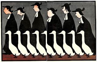 Certainly there's no lineal story in "Le credo" (a lifetime is told in "Dressage"). This narrative form is often called a cycle. Modernism allowed other art forms to expand their limits. I see no valid reasons to deny comics such freedom. Plus: does a comic really need to tell a story (lineal or otherwise) in order to be called, a comic? I don't think so, and that's all I'm saying for now. As for disliking, up to a point, I must add, 99 % of what the comics milieu considers a canon of comics why do I accept Jossot's acrimonious rants against authority? Precisely because mass art tends to be tame (the masses accept what they already know a lot better) and Jossot's work has that kind of desperate energy that exists in a powerless cry. It approaches (being a moralist, he doesn't achieve it) Baudelaire's absolute comic: the grotesque. Also: like everybody else, I'm biased.