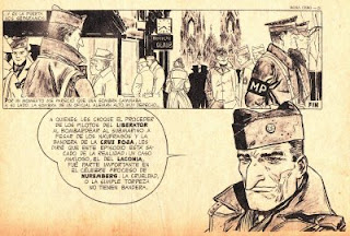 8. the same panel as originally published in Hora Cero (monthly) # 3 (July, 1957); no comments needed... (the original title of the story is "Un teniente alemán..."; as an aside: I can't understand why the Laconia became the Lacinia either?, it's not even a case of laconism...);