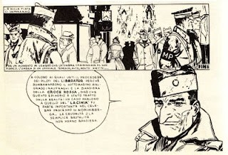 7. the last panel of an absolute comics masterpiece: "Un tenente tedesco" [A German Lieutenant] by Héctor Germán Oesterheld and Hugo Pratt (Mondadori, 1976 - one of two pirate editions; the other one was by Ivaldi); not only was the panel published crooked as shown, it also lost almost all the washes (the lines aren't that greatly reproduced either);