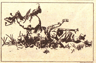 Another great comics artist (a writer: Héctor Germán Oesterheld, I bet...) says goodbye to Carlos Roume when he left Argentina to work for Fleetway in England (Frontera Extra # 11, September, 1959). He says, among other things: "He's going away, but "his" Old Homeland [Oesterheld plays with the title of one of their series: "Patria Vieja"] goes with him. He wants to turn our gaucho themes famous in Europe. We are sure that he will succeed. He has more than enough talent to do it."