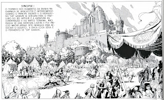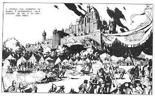 2. when I first saw my good friend Manuel Caldas' Príncipe Valente edition (Livros de Papel [paper books], 2005) I thought: I've been disrespected by publishers who were selling comics in about the same way as they very well could be selling potatoes (and they would sell rotten potatoes if people were dumb enough to buy them: are comics readers somewhat less bright than potato buyers?, I guess so...); if you like Hal Foster's art (or Warren Tufts') do yourself a favor and buy Manuel's editions in Spanish and Portuguese (http://www.manuelcaldas.com/) or in English (http://tinyurl.com/l8qcxr; http://tinyurl.com/l252ck: scroll down a bit, please...); these are labors of love; (only now, after all these years, did I notice that Hal Foster used aerial perspective in this spectacular image!, thanks Manel!);