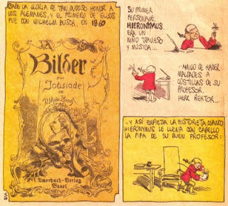 2. ...but he refrains himself saying that the first comic was published in Germany by Wilhelm Busch: Bilder zur Jobsiade (pictures to illustrate the saga of [Hieronymus] Jobs; my flawed, I'm sure, translation); not only did Rius say that the book was published in 1860 (predating Max und Moritz - 1865; Bilder zur Jobsiade was published in 1872), he also ignored Rodolphe Töpffer (and I must add the disclaimer that I don't believe that Töpffer did the first comic); other names were ignored and facts mistaken;