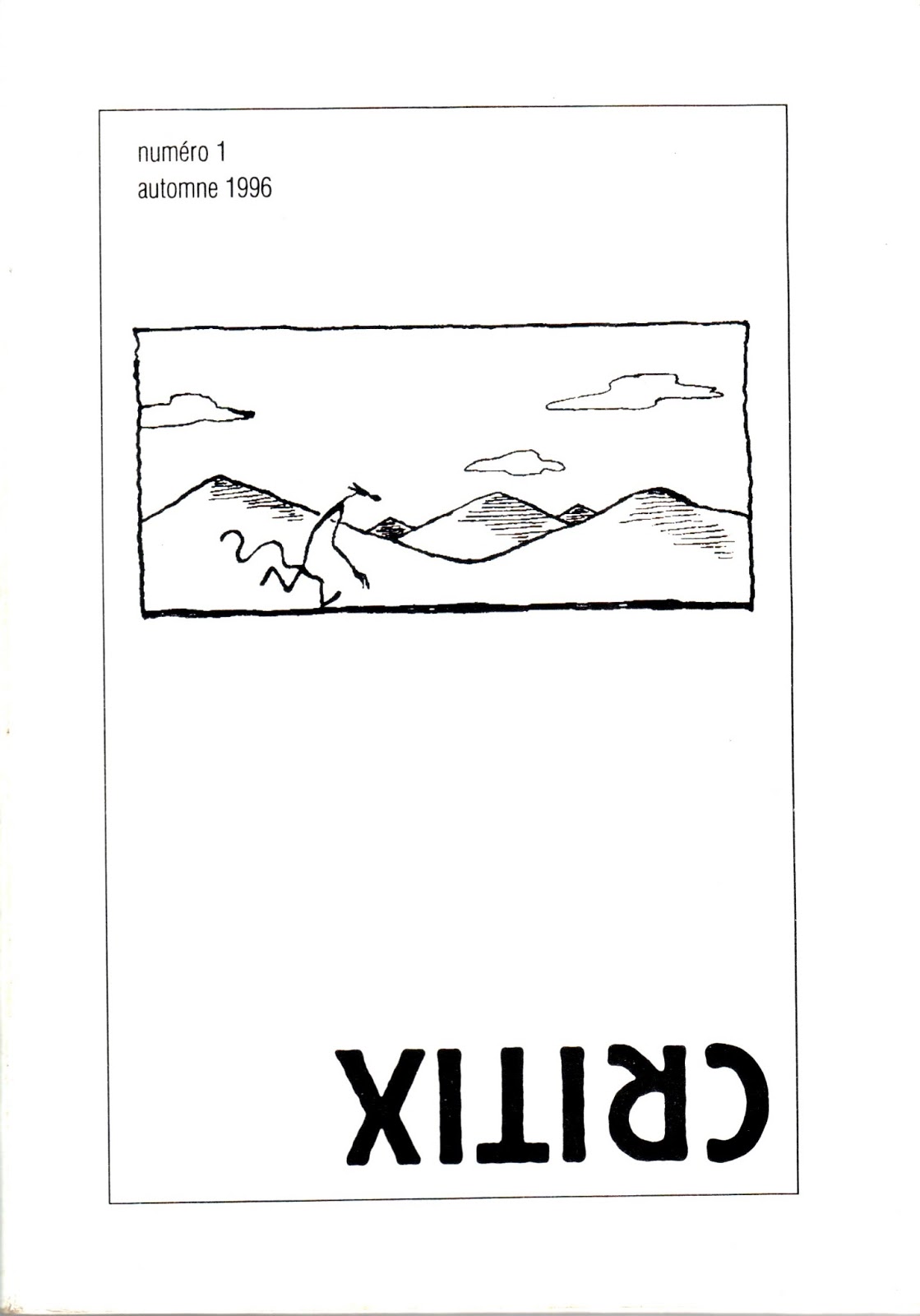 Chavanne, Renaud (1997). “Qu’est-ce que la critique?,” in Critix # 2. Argenteuil: Bananas BD.